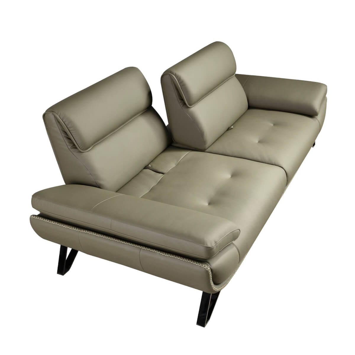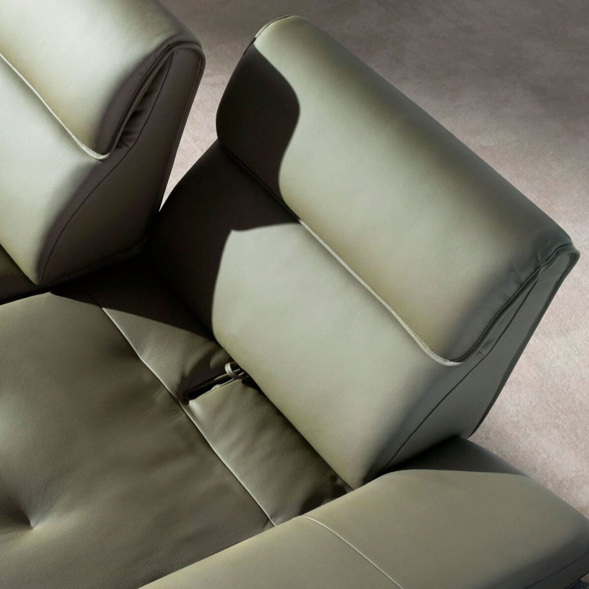 Modern dizájnú, 3 személyes, olívazöld marhabőrrel kárpitozott kanapé. Stílusának és sötét krómozott rozsdamentes acél lábainak köszönhetően ez a kanapé egy csipetnyi avantgárdot és eleganciát visz otthonába, amire vágyik. Termék méretei: 225 x 127 x 95 cm. – Az 1,25 mm vastag marhabőr kárpitozás kiváló minősége nemcsak eleganciát és különlegességet kölcsönöz neki, hanem nagy tartósságot és kényelmet is. – Minden kanapénk a legmagasabb minőségű anyagokból készül, masszív belső szerkezettel, tömör természetes fenyőfából. – A kézzel állítható háttámla lehetővé teszi, hogy a felhasználó igényeihez igazítsa, maximális kényelmet és praktikumot biztosítva.