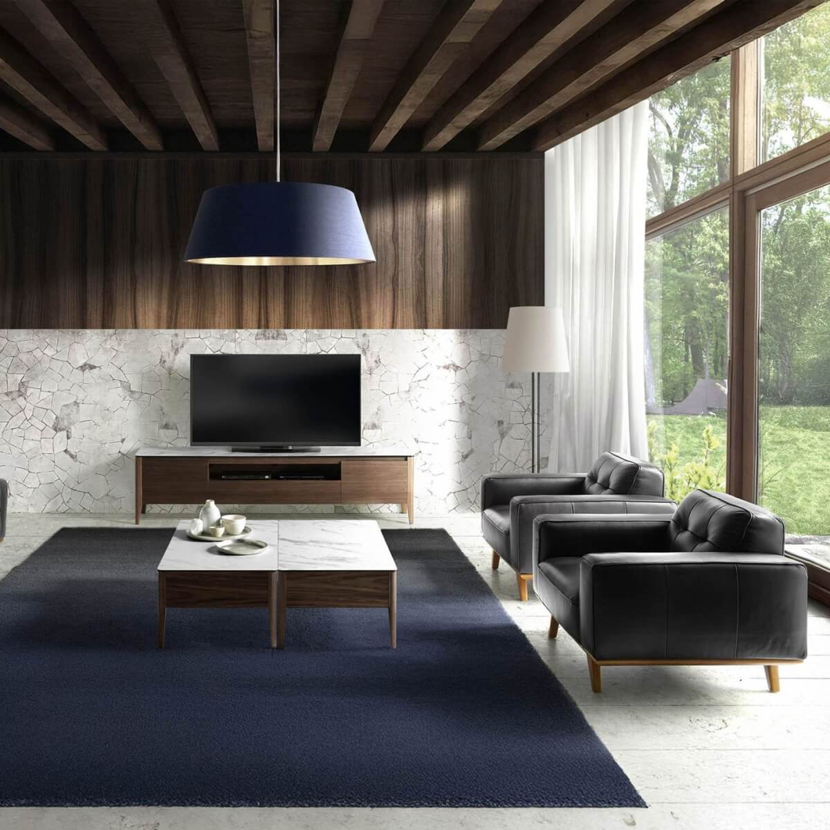 Chester negro fotel: Modern dizájn, fekete marhabőrrel kárpitozott ülőfelülettel és háttámlával. Stílusának és dió színű fa lábainak köszönhetően ez a Chester fotel a dizájn és a kényelem tökéletes kombinációja.