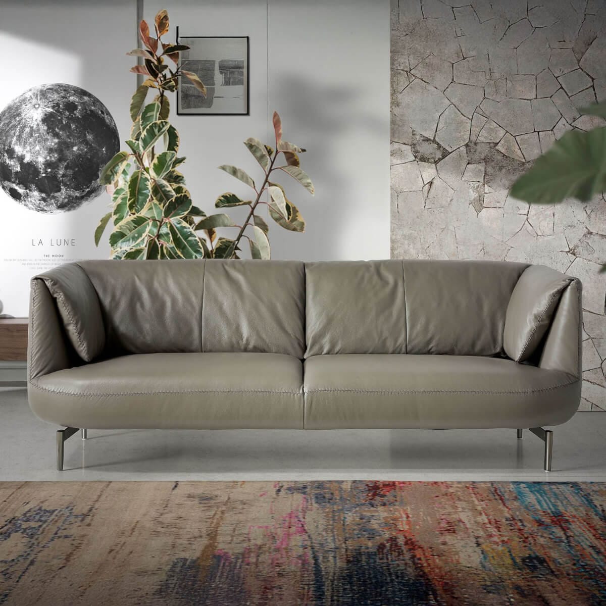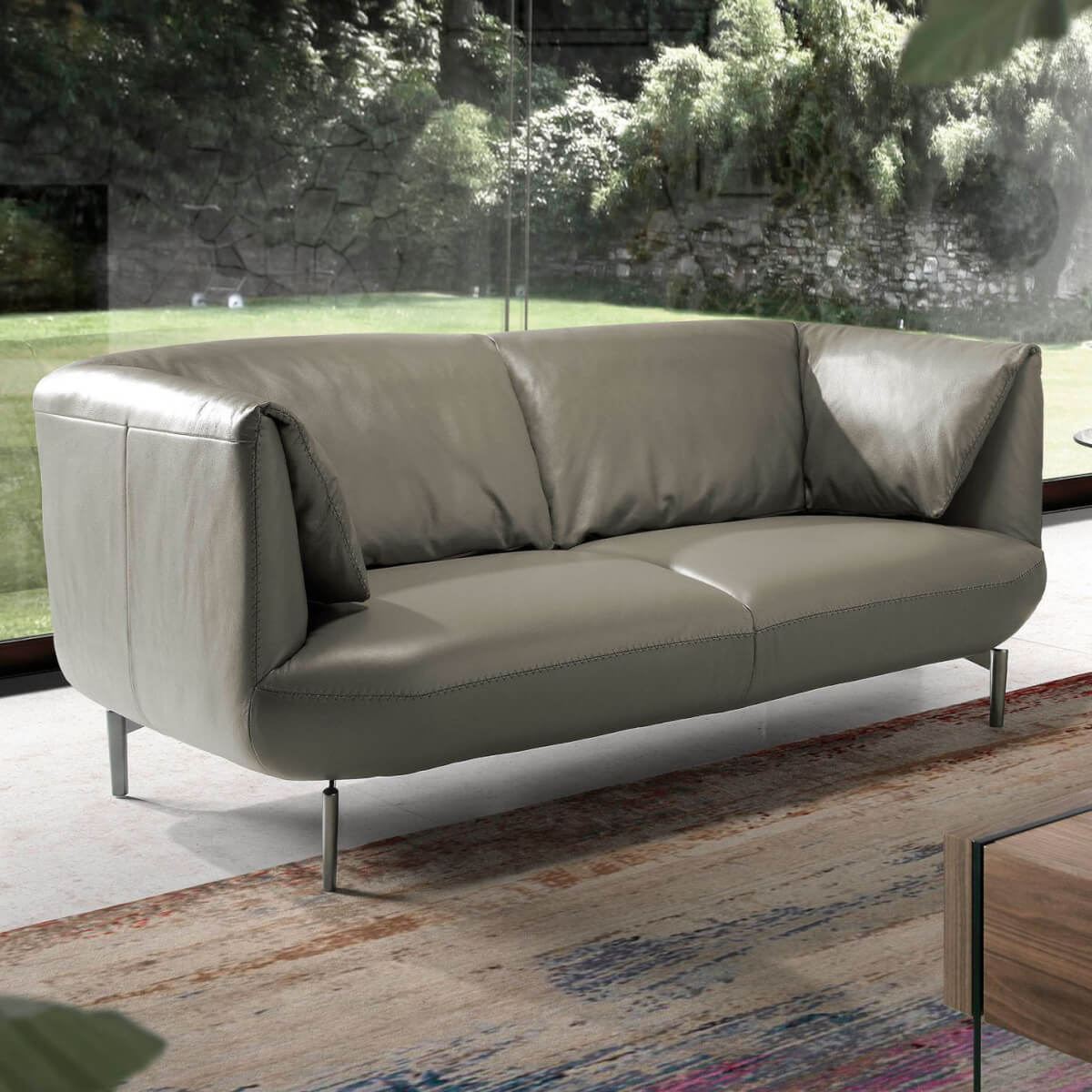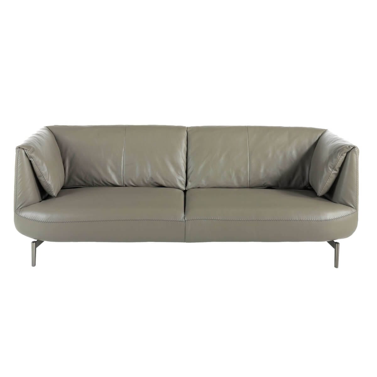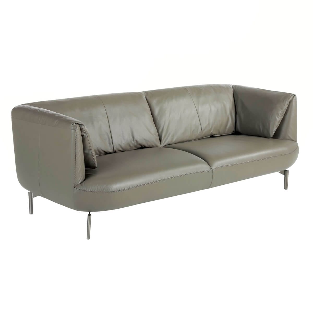 személyes, modern dizájnú kanapé, sötétszürke marhabőrrel kárpitozva. Stílusának és polírozott rozsdamentes acél lábainak köszönhetően ez a kanapé egy csipetnyi avantgárdot és eleganciát visz otthonába, amire vágyik. Termék méretei: 210 x 90 x 78 cm. – Az 1,5 mm vastag marhabőr kárpit kiváló minősége nemcsak eleganciát és különlegességet kölcsönöz neki, hanem nagy tartósságot és kényelmet is biztosít. – Minden kanapénk a legmagasabb minőségű anyagokból készül, masszív belső szerkezettel, tömör természetes fenyőfából.
