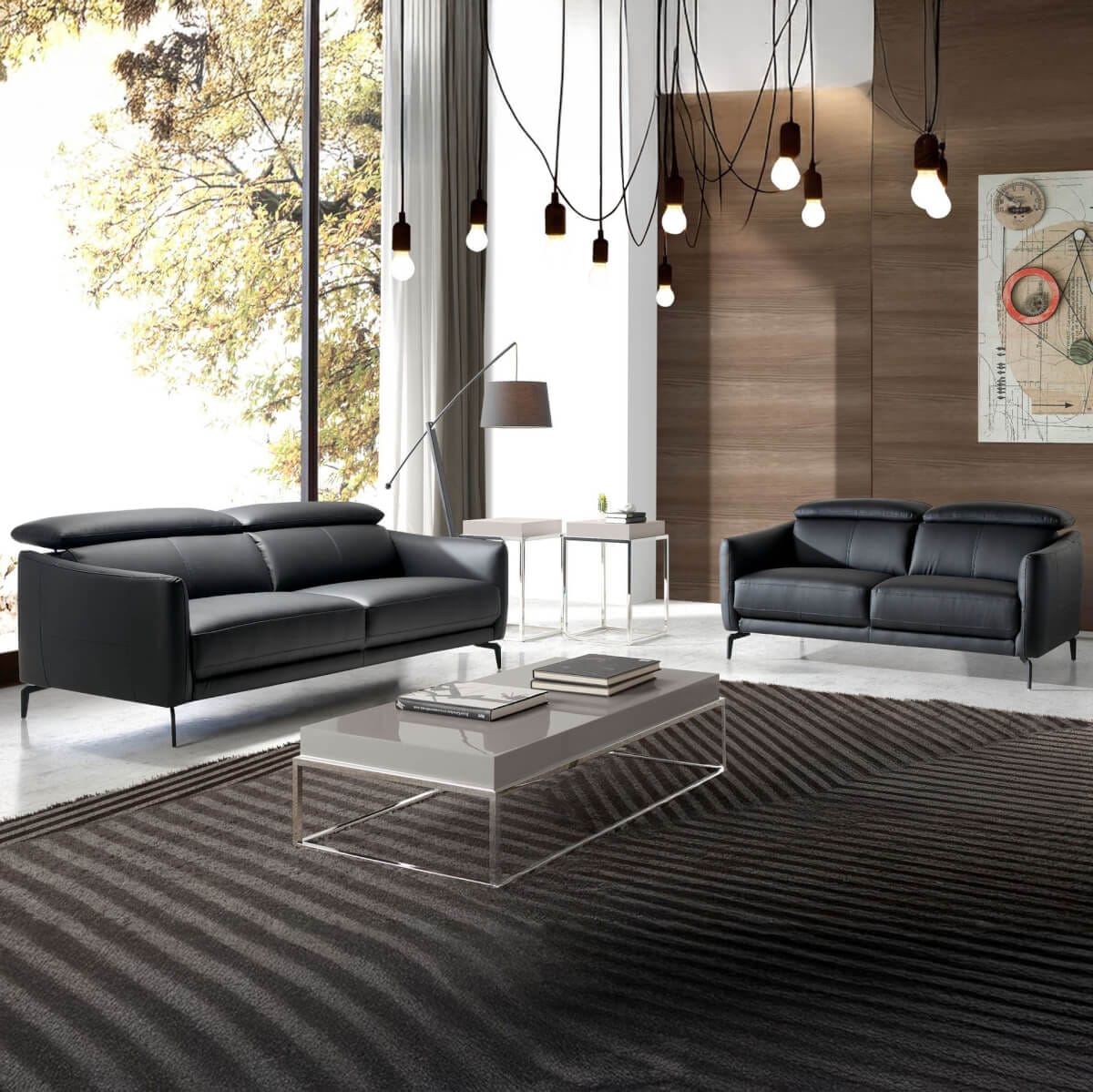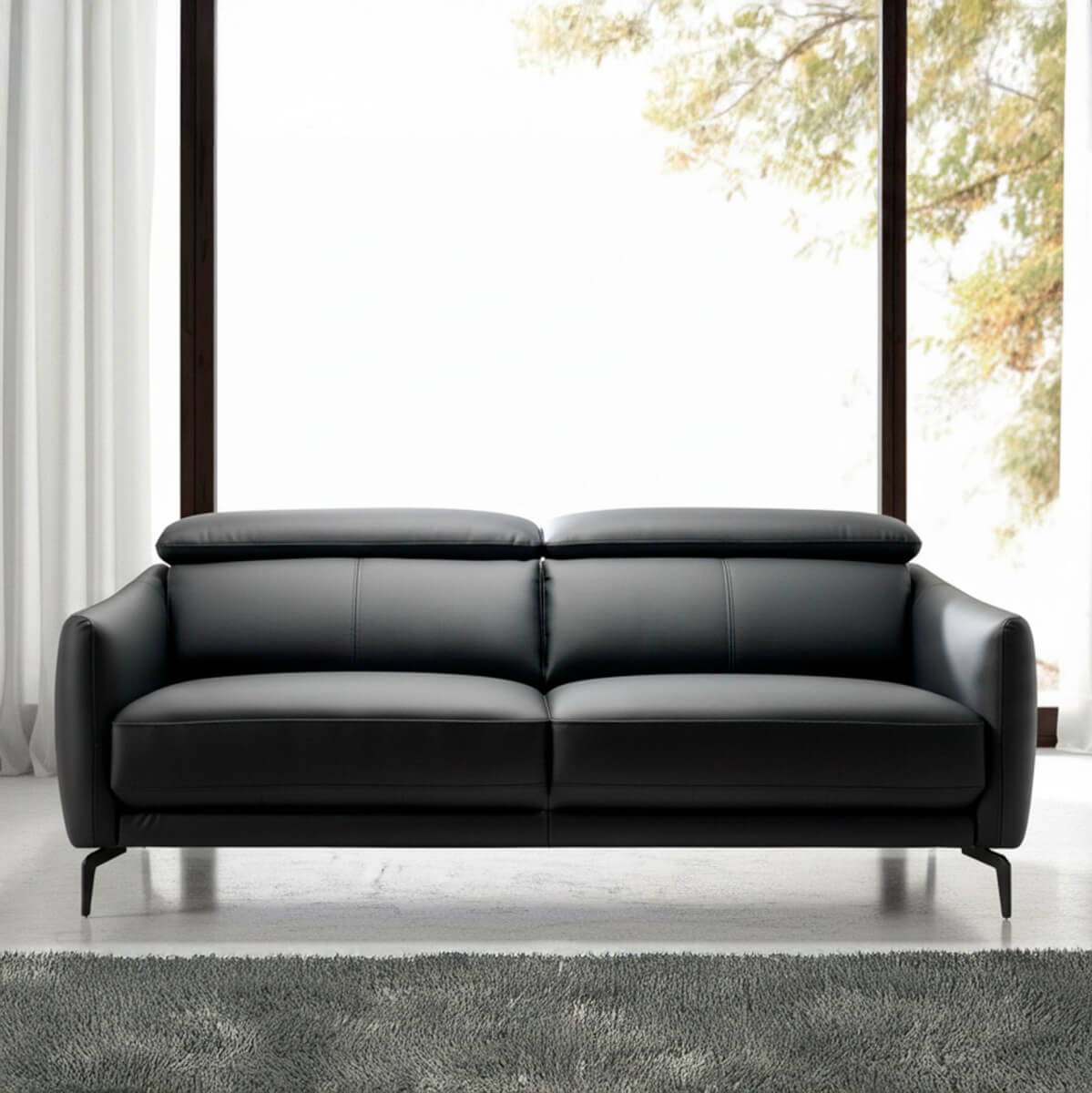 3 személyes, modern dizájnú kanapé, fekete marhabőrrel kárpitozva, fejtámlával a nagyobb kényelem érdekében. Stílusának és fekete epoxigyantás rozsdamentes acél lábainak köszönhetően ez a kanapé egy csipetnyi avantgárd és eleganciát visz otthonába, amire vágyik. Termék méretei: 197 x 100 x 94 cm. – Az 1,5 mm vastag marhabőr kárpit kiváló minősége nemcsak eleganciát és különlegességet kölcsönöz neki, hanem nagy tartósságot és kényelmet is. – A független, artikulált fejtámlák extra kényelmet és alkalmazkodóképességet biztosítanak, anélkül, hogy elhanyagolnák a legmodernebb stílust. – Minden kanapénk a legmagasabb minőségű anyagokból készül, masszív belső szerkezettel, tömör természetes fenyőfából.